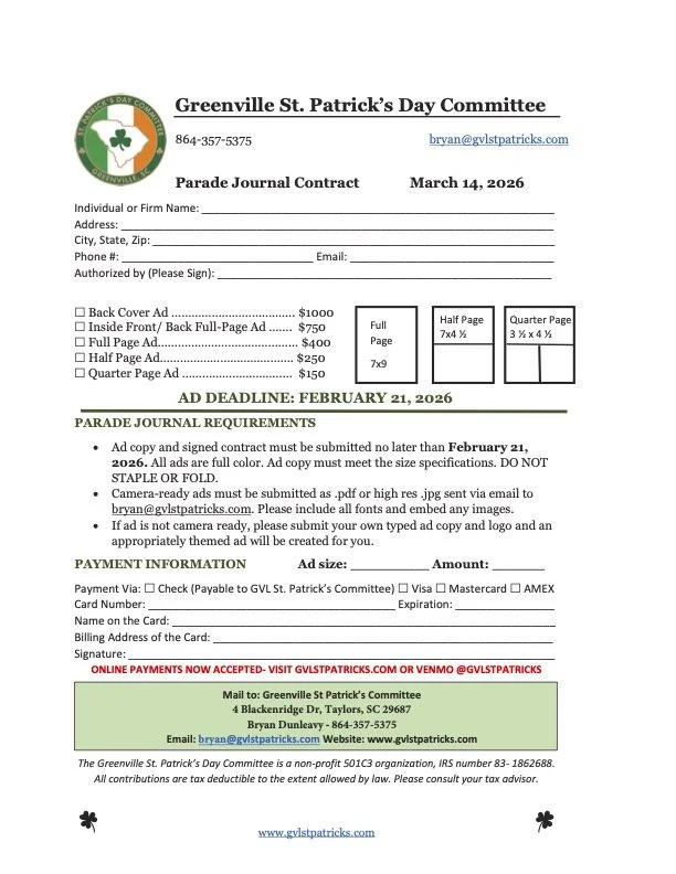 If you would like to be a Sponsor for our 2026 Parade and Festival, please email: brian@gvlstpatricks.com